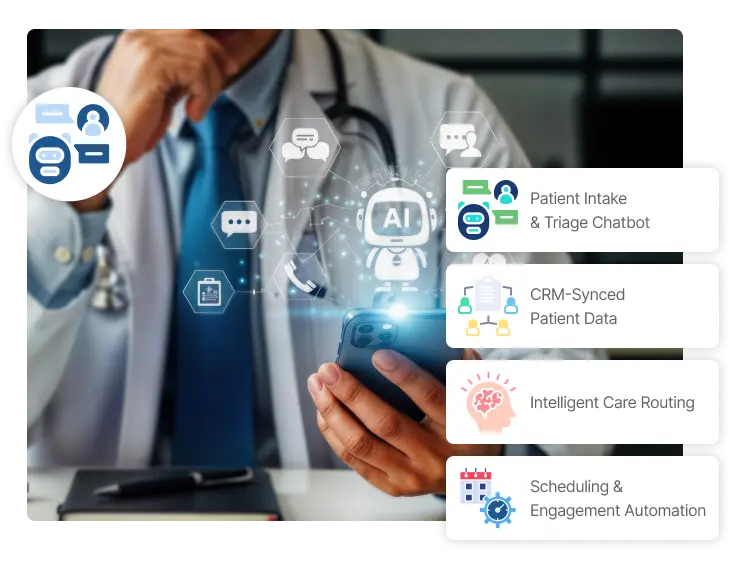Built for healthcare organizations seeking to reduce administrative burden, improve intelligent care routing, and modernize their digital front door with secure, EHR-integrated AI automation.