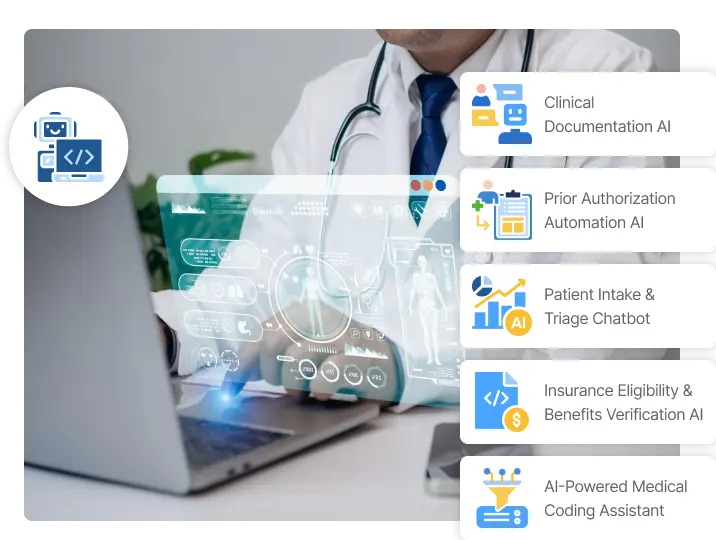 Accelerate operations and unlock revenue with AI agents across documentation, intake, prior authorization, eligibility, and coding.